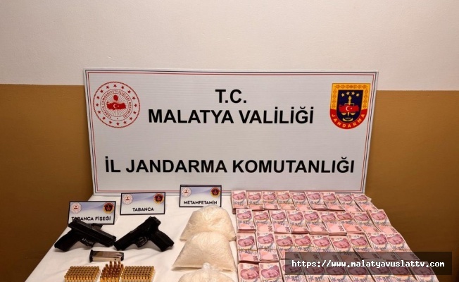 Malatya İl Jandarma Komutanlığı ekiplerince Battalgazi, Darende ve Yeşilyurt ilçelerinde zehir tacirlerine yönelik operasyon düzenledi. Operasyonda, 2 kilo 502 gram metamfetamin, 540 gram bonzai, 100 gram aseton maddesi, 5 adet tabanca, 142 adet tabanca fişeği, 5 adet ruhsatsız av tüfeği, 6 bin adet dolu makaron, 6 kilo kıyılmış tütün, 4 bin adet sigara filtresi, 400 gram nargile tütünü, 220 paket bandrolsüz kaçak sigara, 120 adet kaçak puro, 81 bin 8000 TL suçtan elde edildiği değerlendirilen para ele geçirilirken 8 zanlı gözaltına alındı.