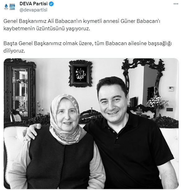 DEVA Partisi Genel Başkanı Ali Babacan’ın annesi Güner Babacan, tedavi gördüğü Bilkent Şehir Hastanesi’nde hayatını kaybetti.