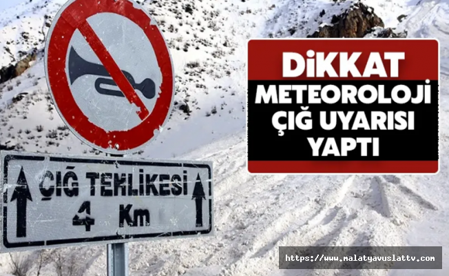 Meteoroloji Genel Müdürlüğü, Elazığ, Malatya, Tunceli ve Bingöl illerinde çığ tehlikesi nedeniyle vatandaşları uyardı. Özellikle yüksek kar örtüsüne sahip eğimli bölgelerde çığ oluşma riski olduğu bildirildi.