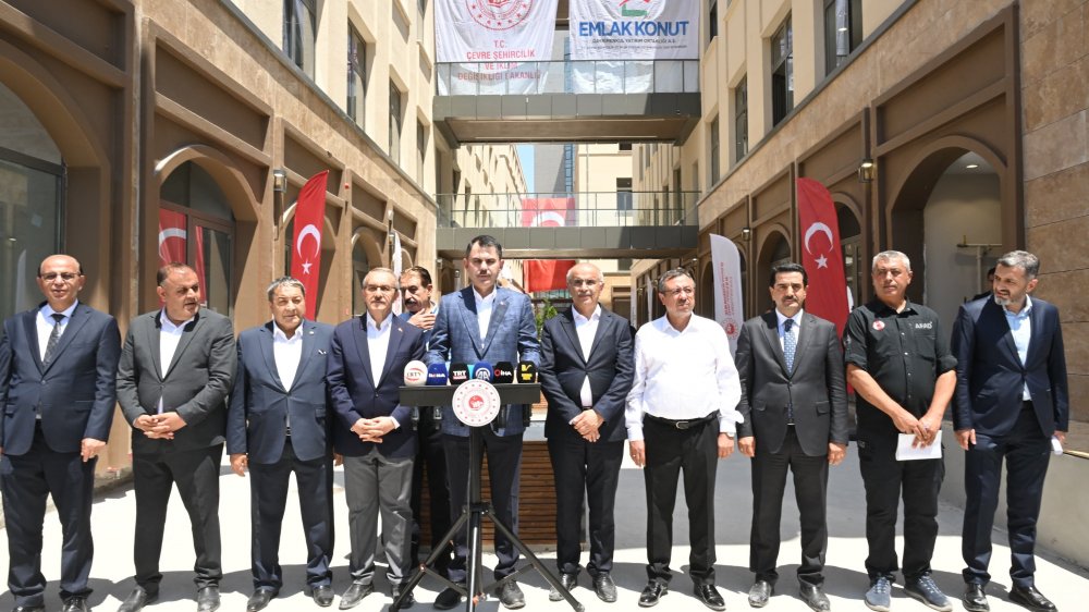 6 Şubat 2023 depremlerinin ardından başlatılan konut seferberliğinde büyük mesafe kat edildiğini ifade eden Bakan Kurum, "6 Şubat 2023'te sadece asrın değil, bin yıllık Anadolu tarihimizin en büyük felaketini yaşamıştık. İnanın her aşamada; yeni yuvaların projelerini çizerken de temellerini atarken de anahtarlarını verirken de afetzede kardeşlerimizin hep yanında olduk. Anadolu coğrafyasının gördüğü en büyük inşa seferberliğini başlattık. 'Yuvasına kavuşmayan kimseyi bırakmayacağız' dedik. 'Bir olacağız, birlik olacağız ve birlikte güçlü yarınlara ulaşacağız' dedik. Verdiğimiz bu sözü asla yere düşürmedik. Bu şuurla geçtiğimiz Eylül ayından bu yana teslim ettiğimiz konutlarımızın üzerine tam 150 bin yeni yuva daha ekledik ve bugün 250 bin konutu aştık. Bugün 250 bin yuvamızda milyonlarca kardeşimiz güvenle yaşıyor, açtığımız on binlerce dükkanda esnafımız helal ekmeğini kazanıyor. Bölgenin büyük bölümünde ekonomimiz o afetle gelen olumsuz etkiden sıyrılıyor güçleniyor, biz de bu durumdan dolayı mutlu oluyoruz, huzur buluyoruz. Şimdi evlerimize ve dükkanlarımıza dair yeni bir aşamaya daha geçiyoruz" ifadelerini kullandı.