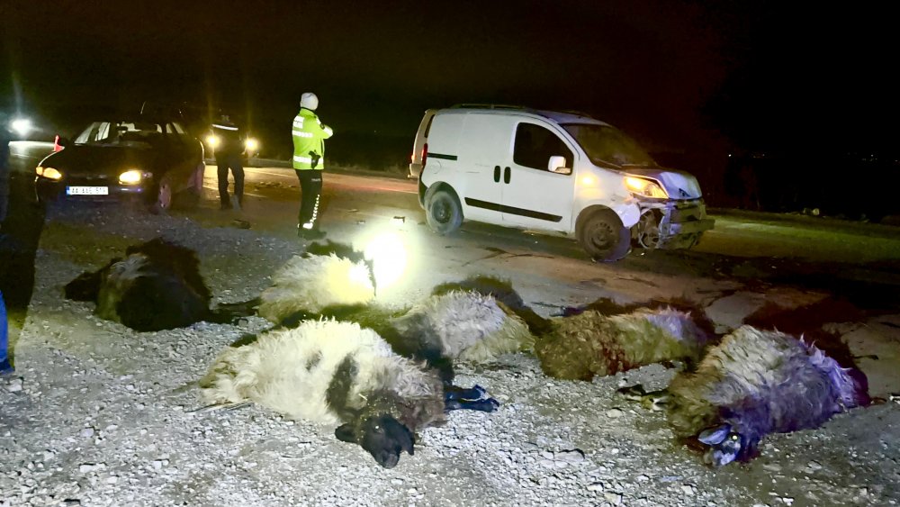 Şehir mezarlığı ile Kuzey Çevreyolu arasında bulunan ve ışıklandırması olmadığı belirtilen bağlantı yolunda, hafif ticari aracın koyun sürüsüne çarpması sonucu 12 hayvan telef oldu, sürücü ise hafif yaralandı.