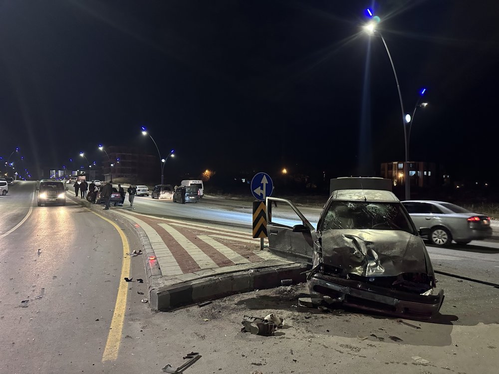 Çarpışmanın etkisiyle araçlardan biri metrelerce savrulurken, her iki araçta bulunan toplam 3 kişi yaralandı.
