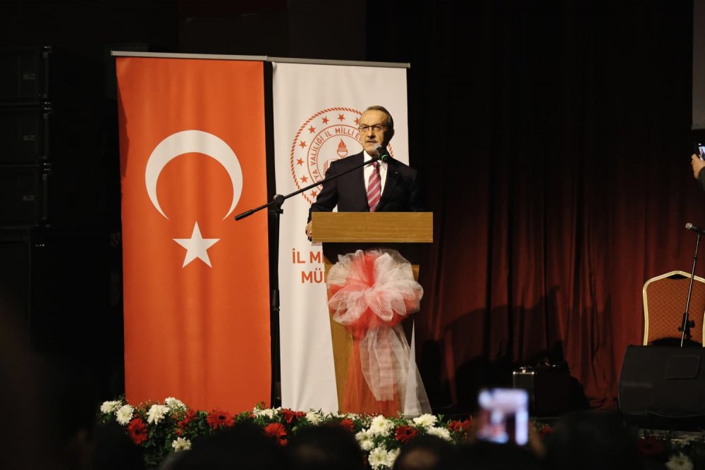 Törende konuşan İl Millî Eğitim Müdürü Behçet Bakır, zorlu ve meşakkatli bir dönemin ardından yeniden yapılanma sürecinin güçlü bir irade ve yüksek sorumluluk bilinciyle yürütüldüğünü vurgulayarak, eğitim camiasının bu sürecin temel taşı olduğunu ifade etti.