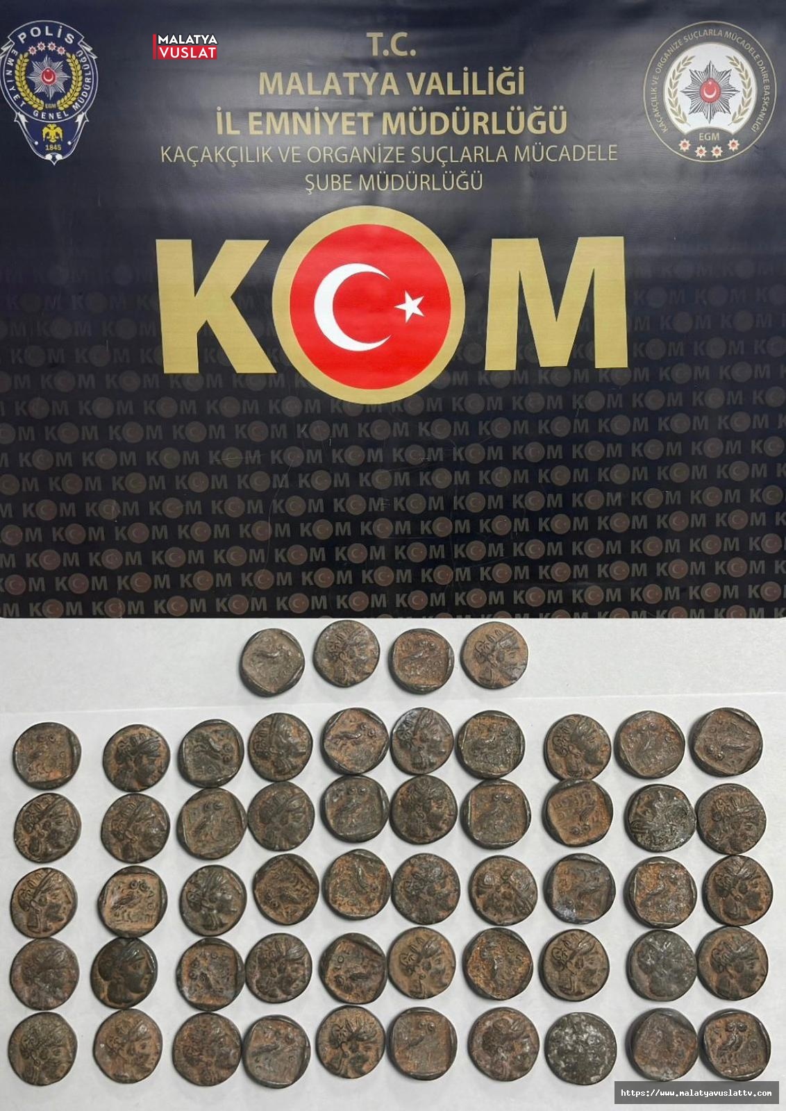 Malatya'da Kaçakçılık ve Organize Suçlarla Mücadele ekiplerince düzenlenen operasyonda çok sayıda tarihi eser niteliğinde sikke ile muhtelif emtia ele geçirildi, 4 şüpheli hakkında yasal işlem başlatıldı.