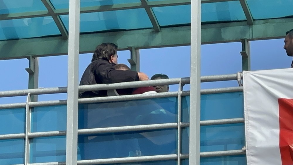 Olay yerine ulaşan polis müzakereci ekipleri şahsı ikna etmek için yoğun çaba sarf ederken, itfaiye ekipleri de tedbir amacıyla trafiğe kapatılan yolda şişme yatak açtı. Yaklaşık 20 dakika süren çalışma sonucunda şahıs bulunduğu yerden çıkarak eyleminden vazgeçti. Şahsın, kendisini ikna eden polis memuruna sarıldığı görüldü.