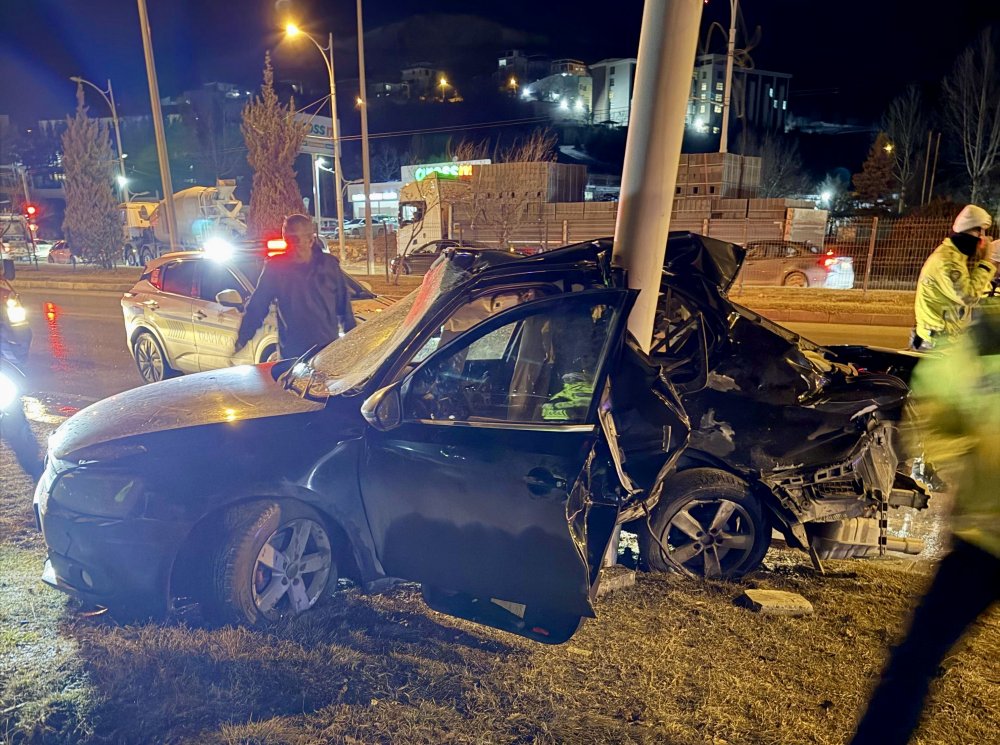 Malatya–Elazığ karayolunda otomobil Trambüs direğine çarptı: 1 yaralı