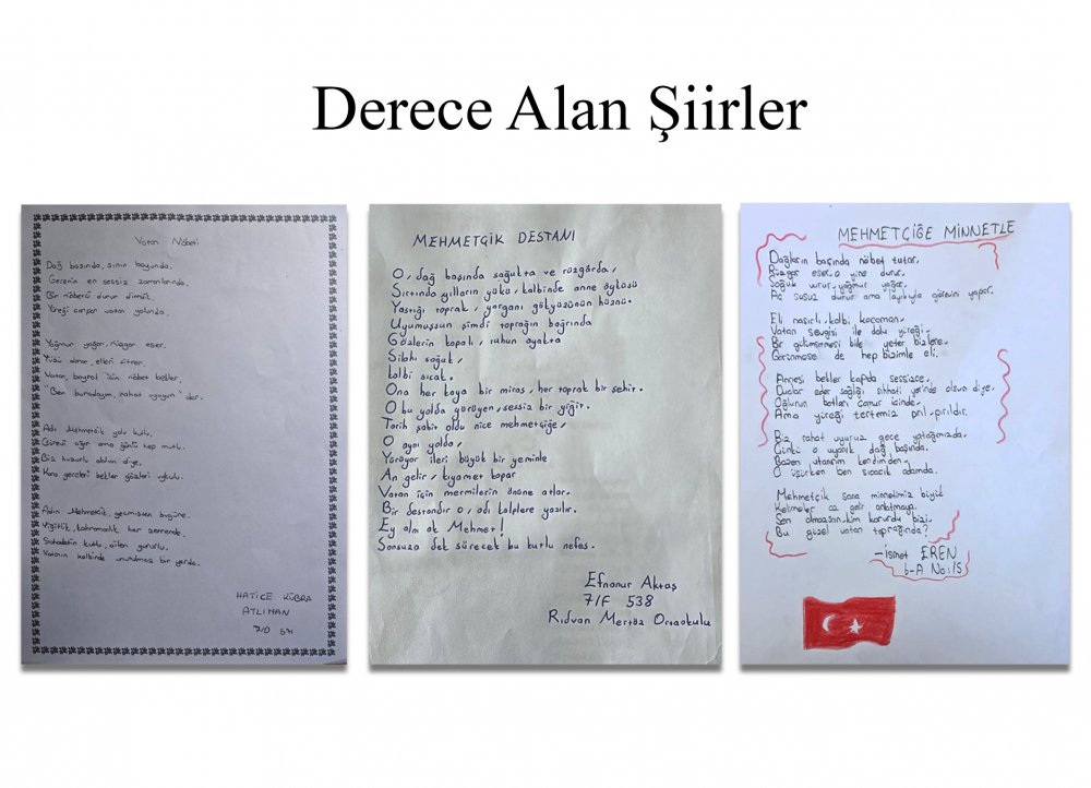 Ziyaret kapsamında öğrenciler, kaleme aldıkları şiirleri Mehmetçiklerle paylaştı. Türkiyem Ortaokulu’ndan Hatice Kübra Atlıhan, Rıdvan Mertöz Ortaokulu’ndan Efnanur Aktaş ve Özal Ortaokulu’ndan İsmet Eren, gösterdikleri başarıyla dikkat çekti.