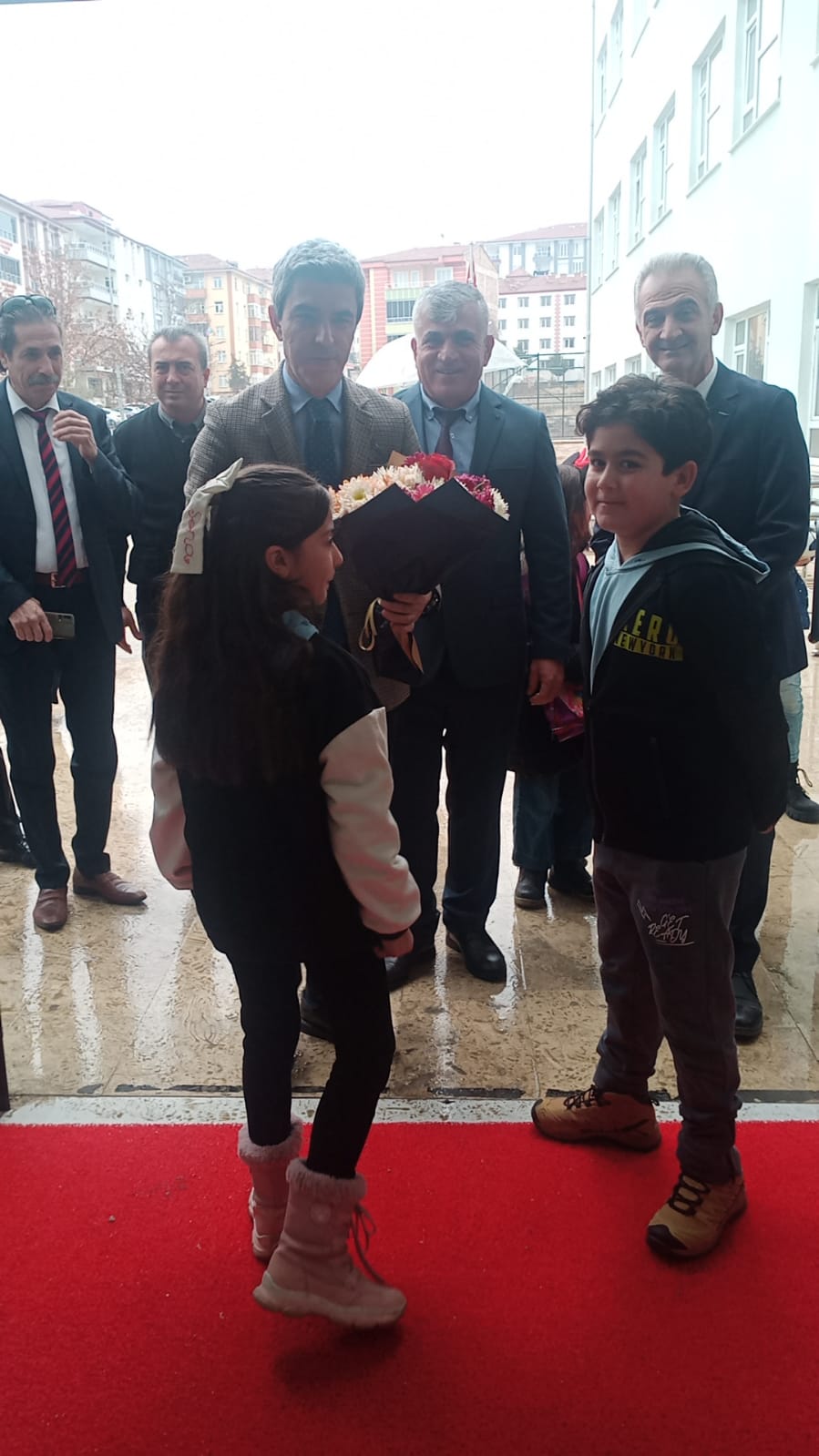 Etkinlikte öğrenciler, İl Milli Eğitim Müdürü Behçet Bakır’a çiçek hediye ederek teşekkür etti.