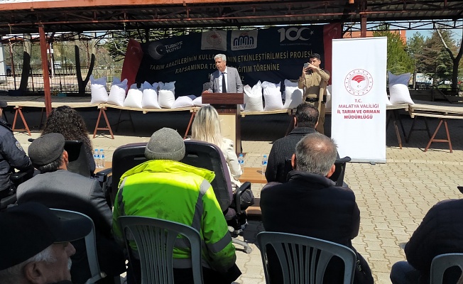 Malatya’da Tarım Arazilerinin Kullanımının Etkinleştirilmesi (TAKE) Projesi kapsamında Arguvan ilçesinde düzenlenen programda üreticilere sertifikalı nohut tohumu dağıtıldı.