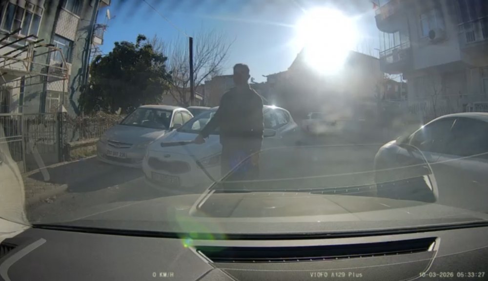 Olay, 10 Mart 2026 günü saat 08.30 sıralarında Yeşilyurt ilçesi Koyunoğlu Mahallesi’nde meydana geldi. Edinilen bilgilere göre araçlarıyla seyir halinde olan F.E. ile İ.Y. arasında yol verme meselesi nedeniyle tartışma çıktı. Araç kamerasına yansıyan görüntülerde şüpheli tartışmanın büyümesi üzerine İ.Y.’nin aracının yolunu kesti.  Araçtan elinde sopa ile inen öfkeli sürücü, F.E.’nin aracına zarar vererek tehditler savurdu.