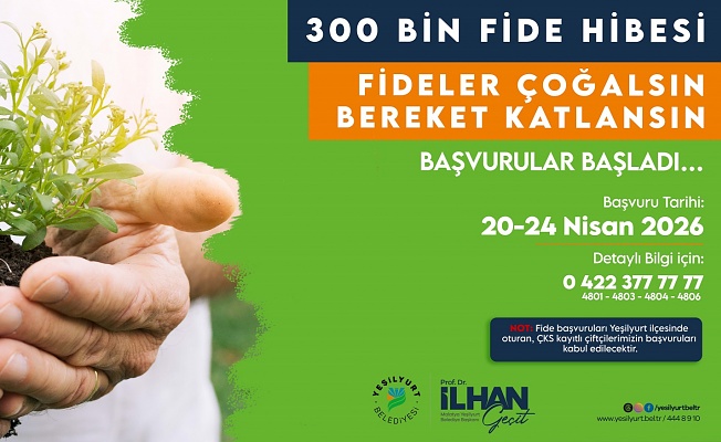 Yeşilyurt Belediyesi, tarımsal üretimi güçlendirmek ve çiftçilere destek olmak amacıyla her yıl düzenlediği fide dağıtımını bu yıl da sürdürüyor. “Fideler Çoğalsın, Bereket Katlasın” sloganıyla gerçekleştirilecek fide dağıtımında, ÇKS (Çiftçi Kayıt Sistemi) kaydı bulunan çiftçilere toplam 300 bin adet fide teslim edilecek. Başvurular ise 20-24 Nisan tarihleri arasında alınacak.