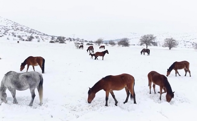 Malatya’da kış mevsiminin sert geçmesi ve yoğun kar yağışı nedeniyle yiyecek bulmakta zorlanan yılkı atları için doğa koruma ekipleri harekete geçti.
